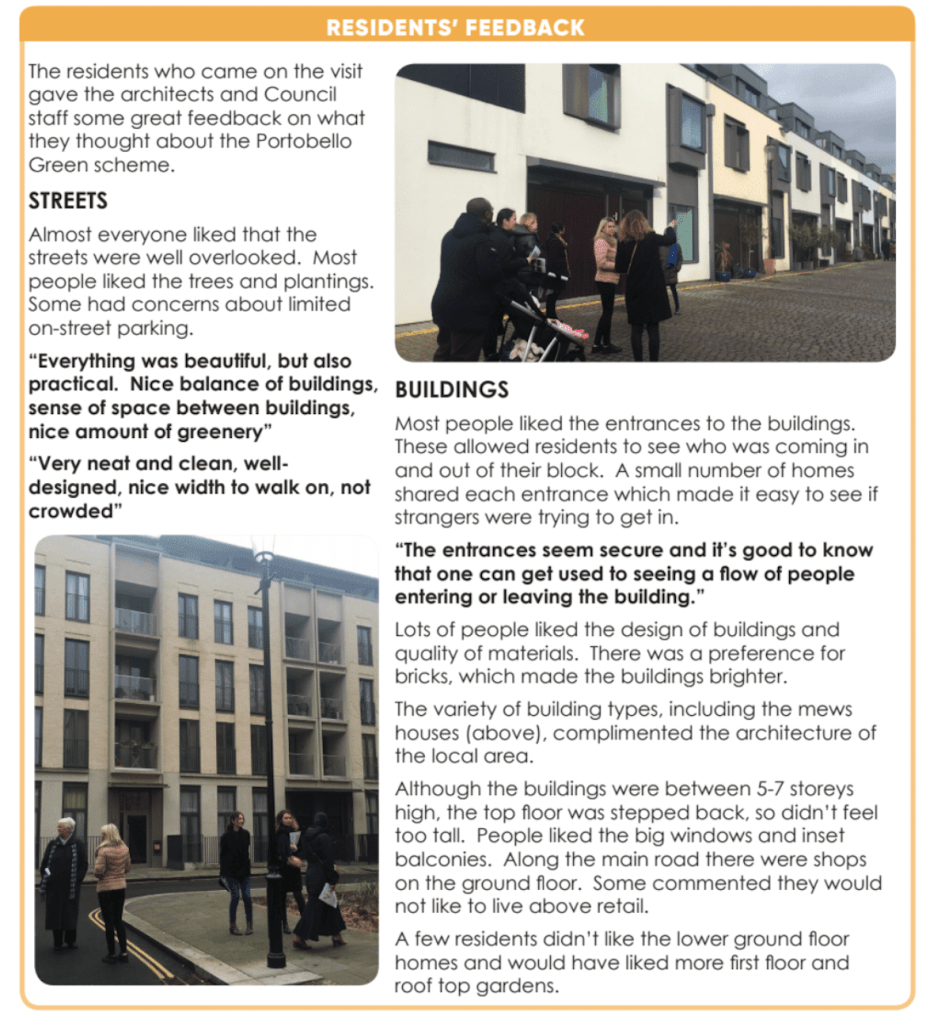In February 2019, for example, 26 residents of WKT estate were shown around the Portobello Green estate designed by PRP. The homes were 5 storey blocks, with the top floor set back, not the 8 stories now proposed by Camden Council.