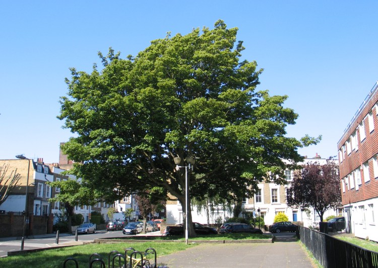 Trees include Oak, Beech, Lime, London Plane, varies types of Maple and Hornbeam. Many of the 56 priority trees have over 30 years life remaining, and together they store over 40 tonnes of carbon (all 123 trees currently store 60 tonnes). For details see the tree report commissioned by Transition Kentish Town here.